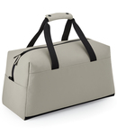 100% recycled polyester. Matte-look PU coating.PVC free.Water repellent fabric.Webbing carry/shoulder straps.Self fabric handle wrap.Extra long main zip compartment.Double layer base panel.Multi-purpose use.Tear out label.Capacity 28 litres.