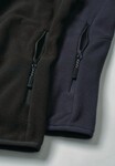 1/4 zip fleece, chest zip pocket, 2 side zip pockets, soft elastic binding at hem and cuffs, 4 tonal zip pullers.